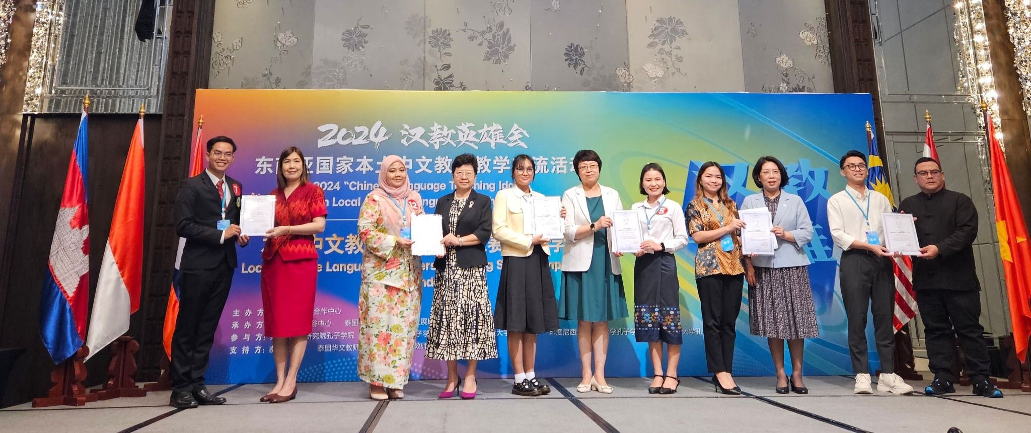 On Nov. 2 and 3, 2024, four locally employed Chinese teachers from KZIUM participated in the First “Chinese Language Teaching Idols” Southeast Asia Region - International Chinese Language Teacher Teaching Skills Exchange Competition in 2024. Nur Afifah Binti Elias won the Teaching Innovation Award; Mariam Binti Md Nor won the Teaching Characteristic Award; and Elya Elfira Binti Azman and Norshuhana Binti Mohd Noor won the Teaching Charm Award.