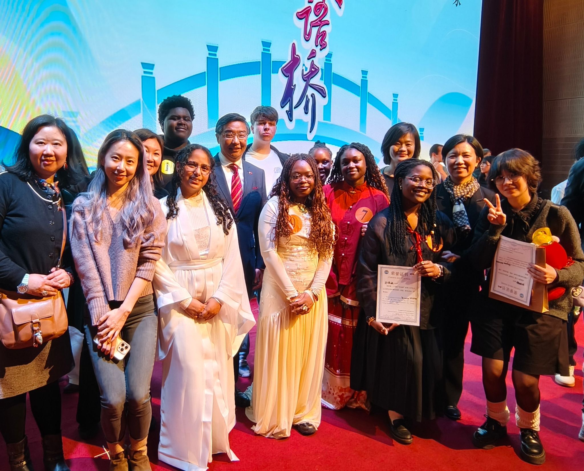 On Apr. 27, the finals of the 2025 Chinese Bridge Chinese Proficiency Competition (Belgium) were held at the Brussels China Cultural Center. It was hosted by the Chinese Embassy in Belgium and CLEC, and jointly organized by CIB, CIL and several partners. Fei Shengchao, Chinese Ambassador to Belgium, delivered the opening remarks. Fu Rong, Chinese Director of CIB, served as a judge for the university, secondary and primary school groups. CIB students Sammy Reguige and Victoire Van Den Hove competed in the secondary school group and won the third prizes.