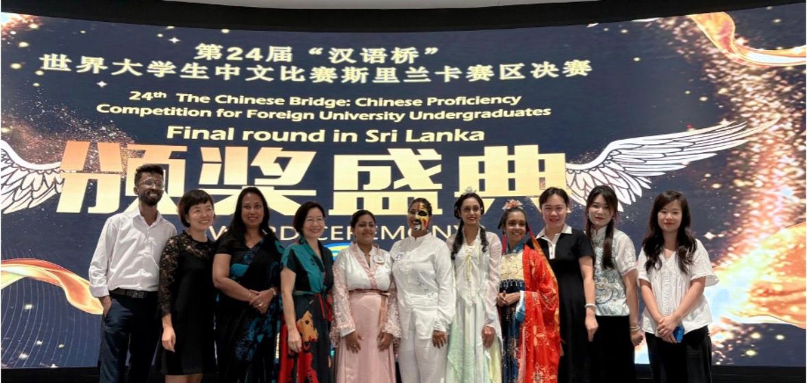 On June 3, the finals of the 24th Chinese Bridge Chinese Proficiency Competition for Foreign College Students (Sri Lanka) were held at the University of Colombo (UC). Madhavi Kumari Weerasekara from the University of Peradeniya, an affiliated teaching site of CIUT, and P. Sathya Jinali Pilapitiya, a first-batch student of the Chinese Language Program at UC, won the first prize.