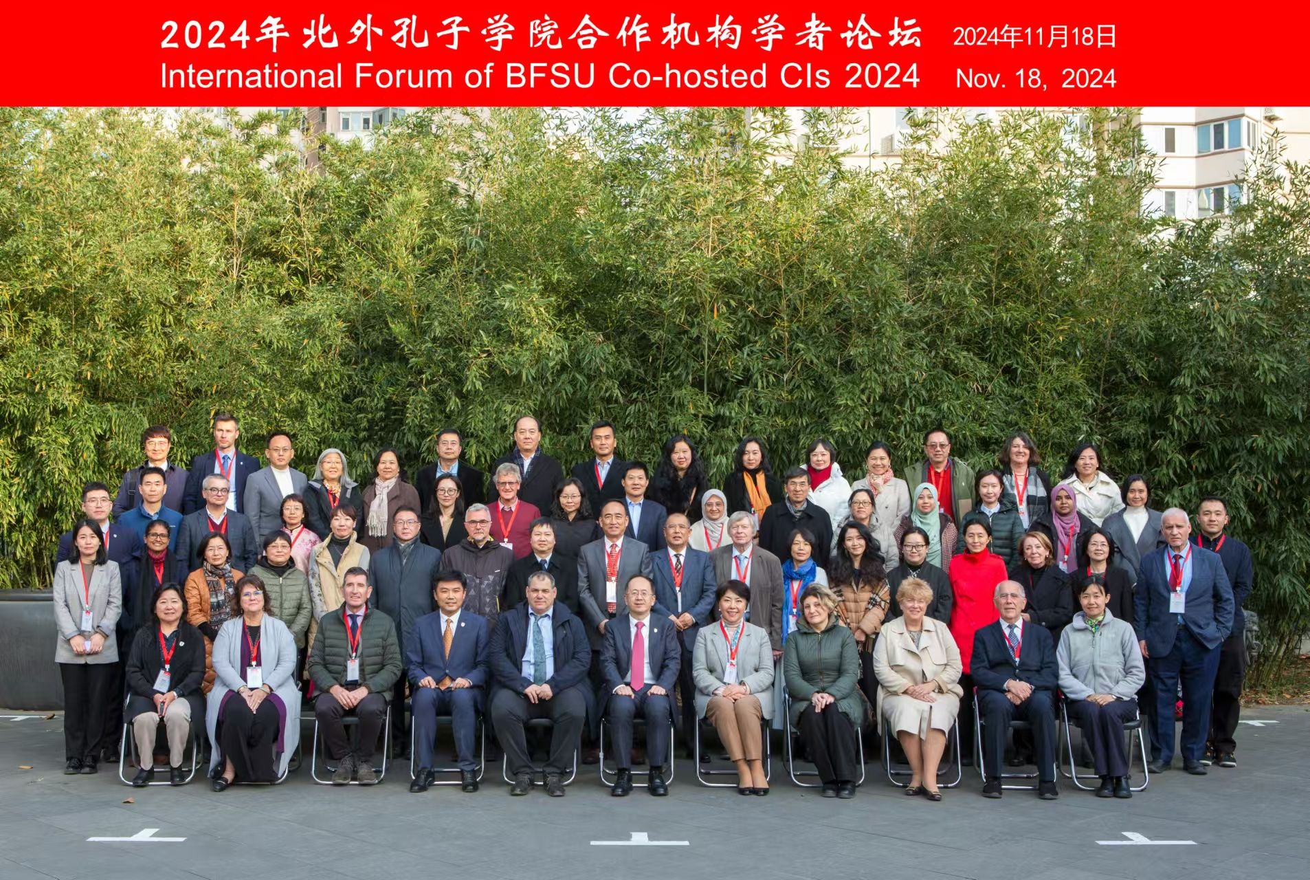 On Nov. 18, 2024, BFSU held the 2024 International Forum of BFSU co-hosted CIs. The theme of the forum was Writing a New Chapter for Confucius Institutes Through Mutual Learning. Jia Wenjian, President of BFSU; Zhao Gang, Vice President of BFSU; Hamar Imre, then Vice Rector of Eötvös Loránd University; Madeleine Danova, Vice President of Sofia University; Innara Guseinova, Vice Rector of Moscow State Linguistic University; Shana Tong, President of Maryknoll School; Reinhard Pöllath, Founder and Sponsor of Stiftung ex oriente; and Federico Masini, Chair of the CISUR Board, attended the opening ceremony. Noor Zalina binti Mahmood, Malaysian Director of KZIUM, and Mei Chuncai, Chinese Director of CIMSLU, delivered speeches on behalf of the local and Chinese directors, respectively. Jia Wenjian presented awards for the 2024 SEE Love (CI)—My China Story Vlog Competition, the Outstanding Chinese Director of the Confucius Institute for the 2023-2024 academic year, and the Medal for Long Service as a Confucius Institute Director by Chinese International Education Foundation (CIEF).
