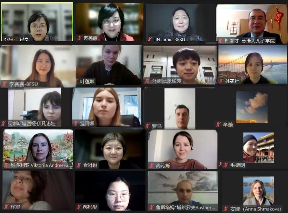 On Nov. 22, CIMSLU hosted the 2022 Online Workshop for local Chinese language teachers in Russia. Jin Limin, Director of BFSU Office of Confucius Institutes, Cui Feng, Managing Director of FLTRP General Language Educational Publishing Branch, Mei Chuncai, Chinese Director of CIMSLU, and 88 Russian local teachers attended the opening ceremony.