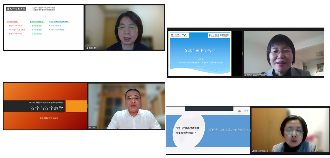 In December 2021, BFSU hosted the 2021 In-Service Training for International Chinese Language Teachers of BFSU co-hosted CIs. Ninety-seven international Chinese language teachers participated. Six talks were given respectively by Tang Jinlan and Meng Dehong from BFSU, Zheng Yanqun and Li Lin from Beijing Language and Culture University (BLCU), Zhang Yangyang from Minzu University of China, and Zong Min from China Foreign Affairs University.